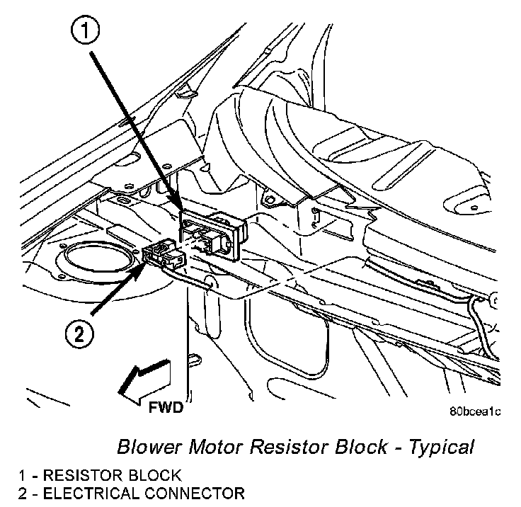 CAUTION: Stay clear of the blower motor and resistor block (Hot). Do not operate the blower motor with the resistor block removed.REMOVAL
