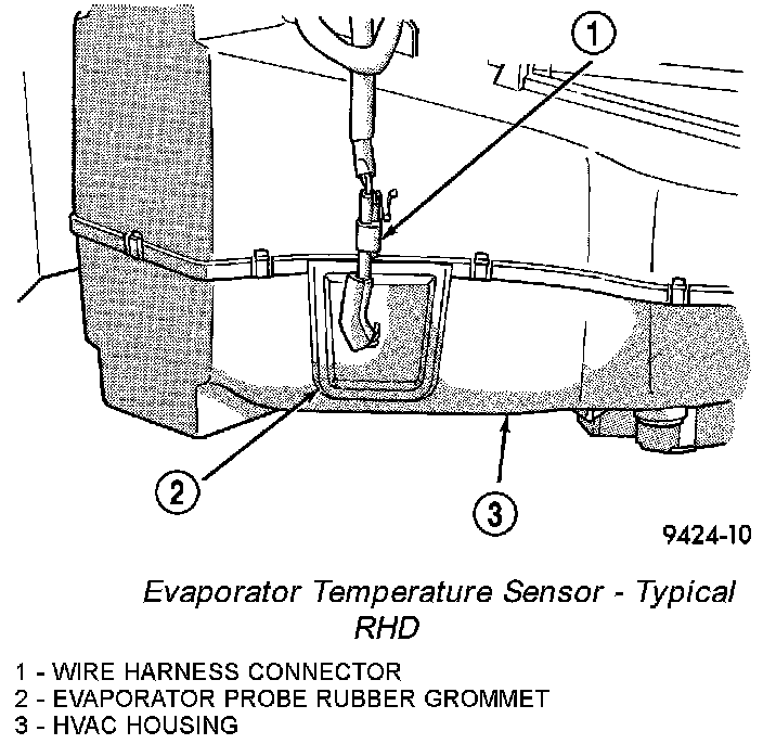 1. Install the evaporator temperature sensor probe into the A/C evaporator.