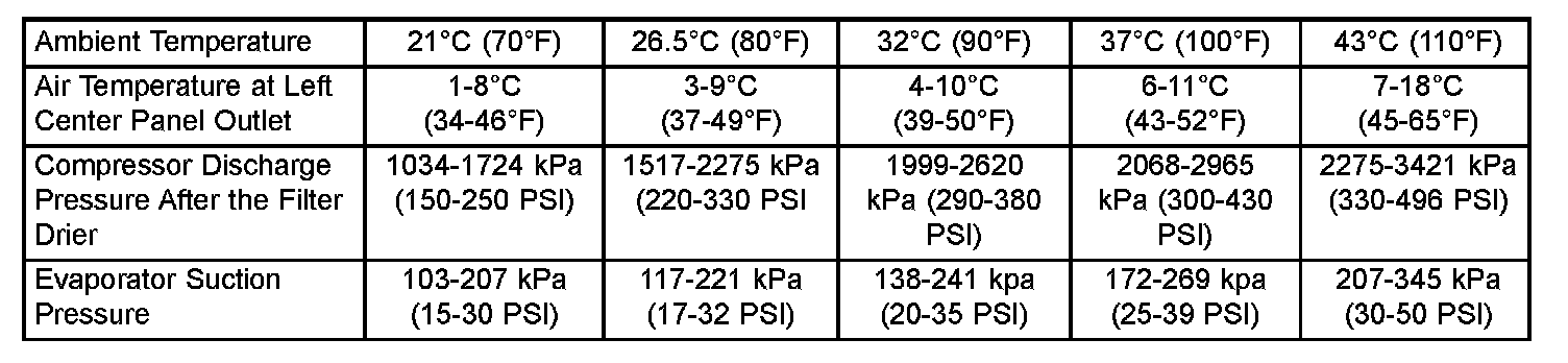 A/C Performance Temperatures -(2.4L Turbo Engine Only):