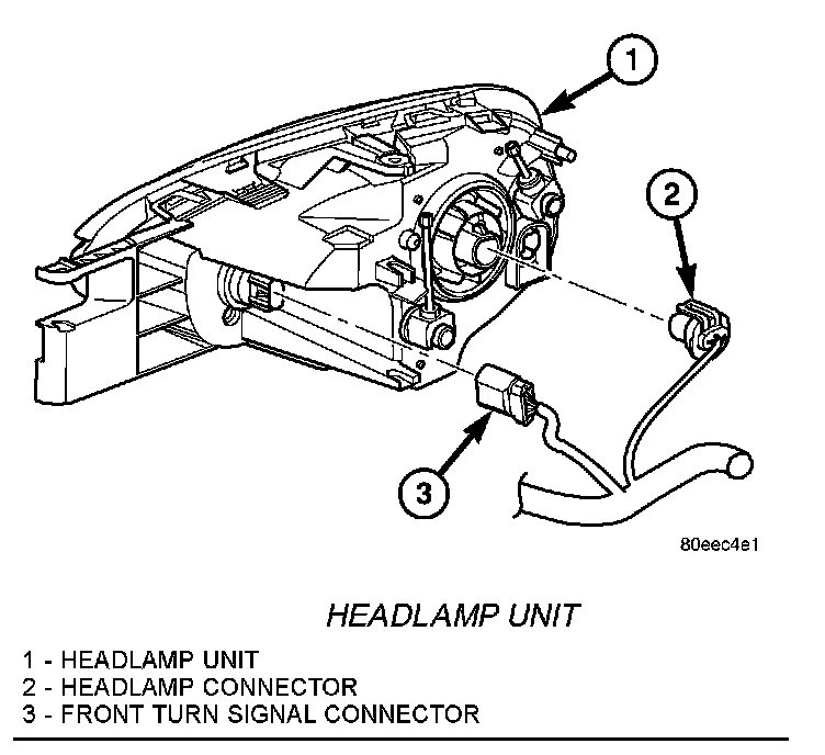 2. Remove two screws attaching headlamp unit to upper crossmember.
