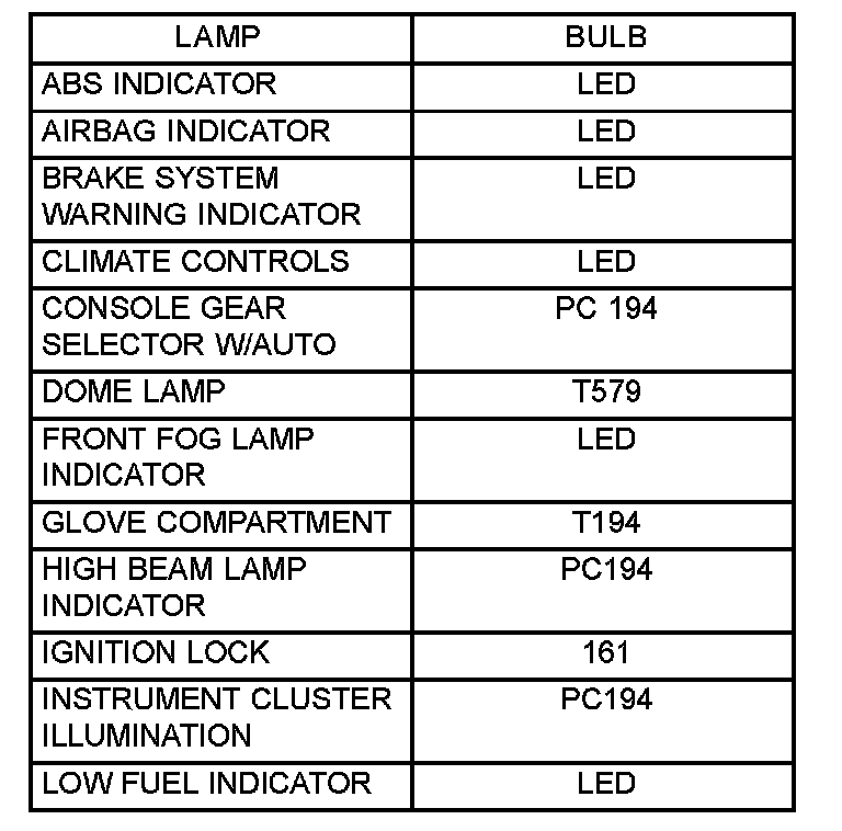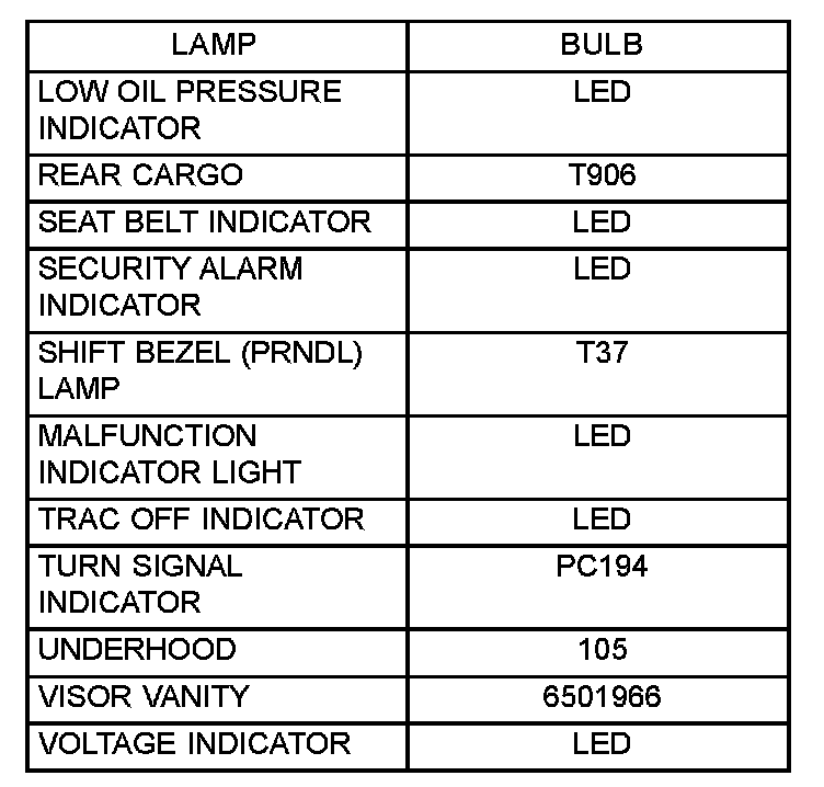 : Do not use bulbs other than those listed in the chart below. Damage to lamp can result.