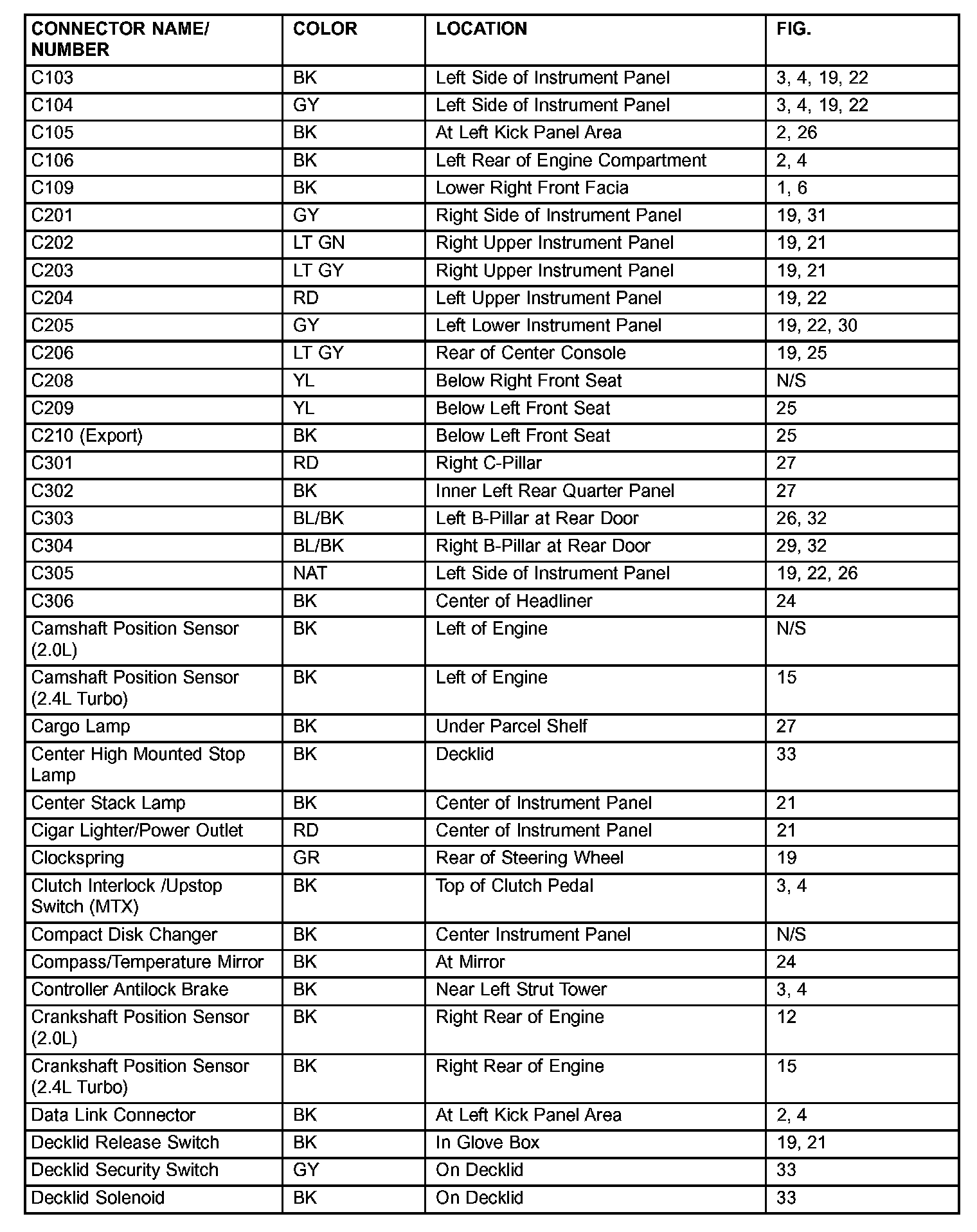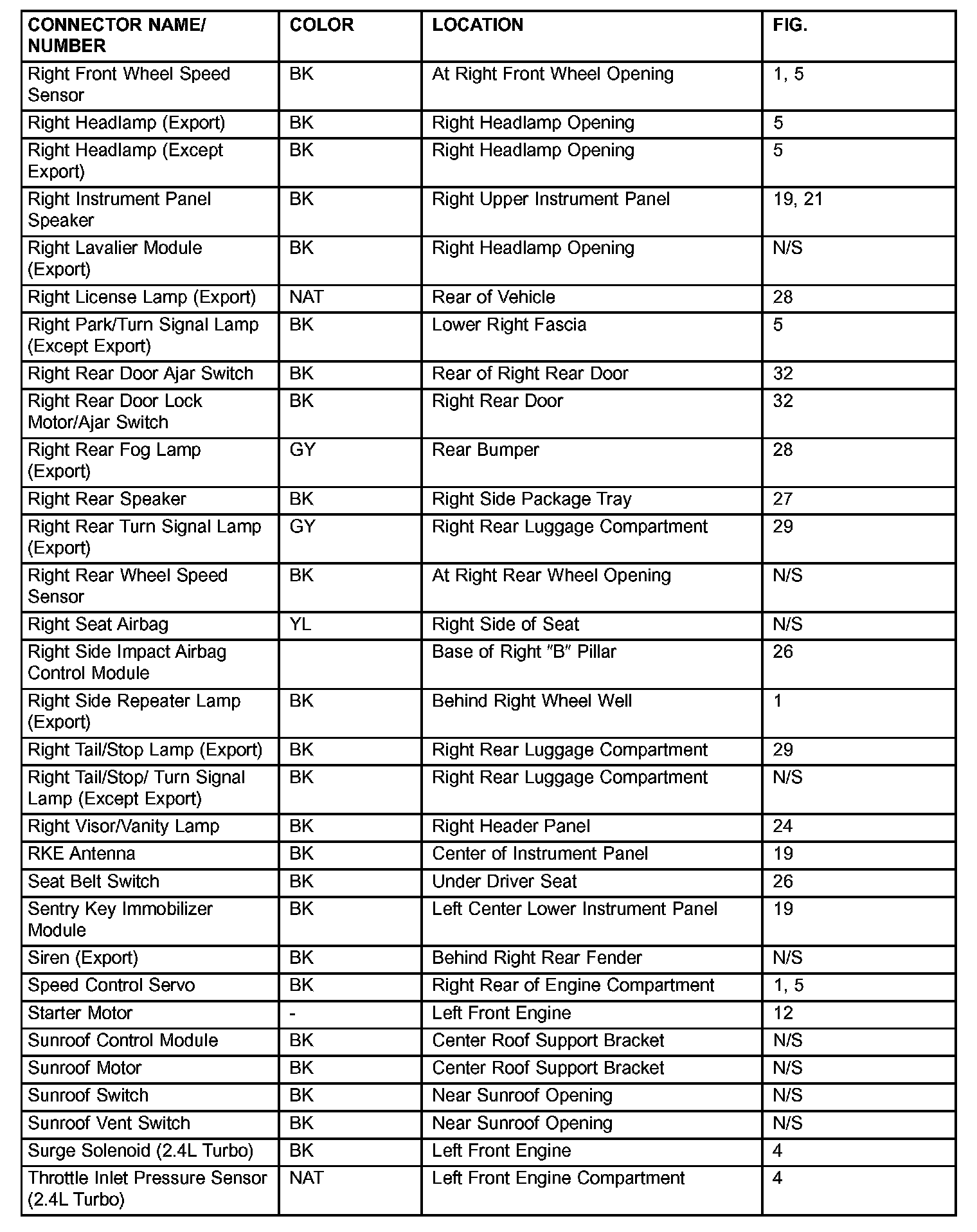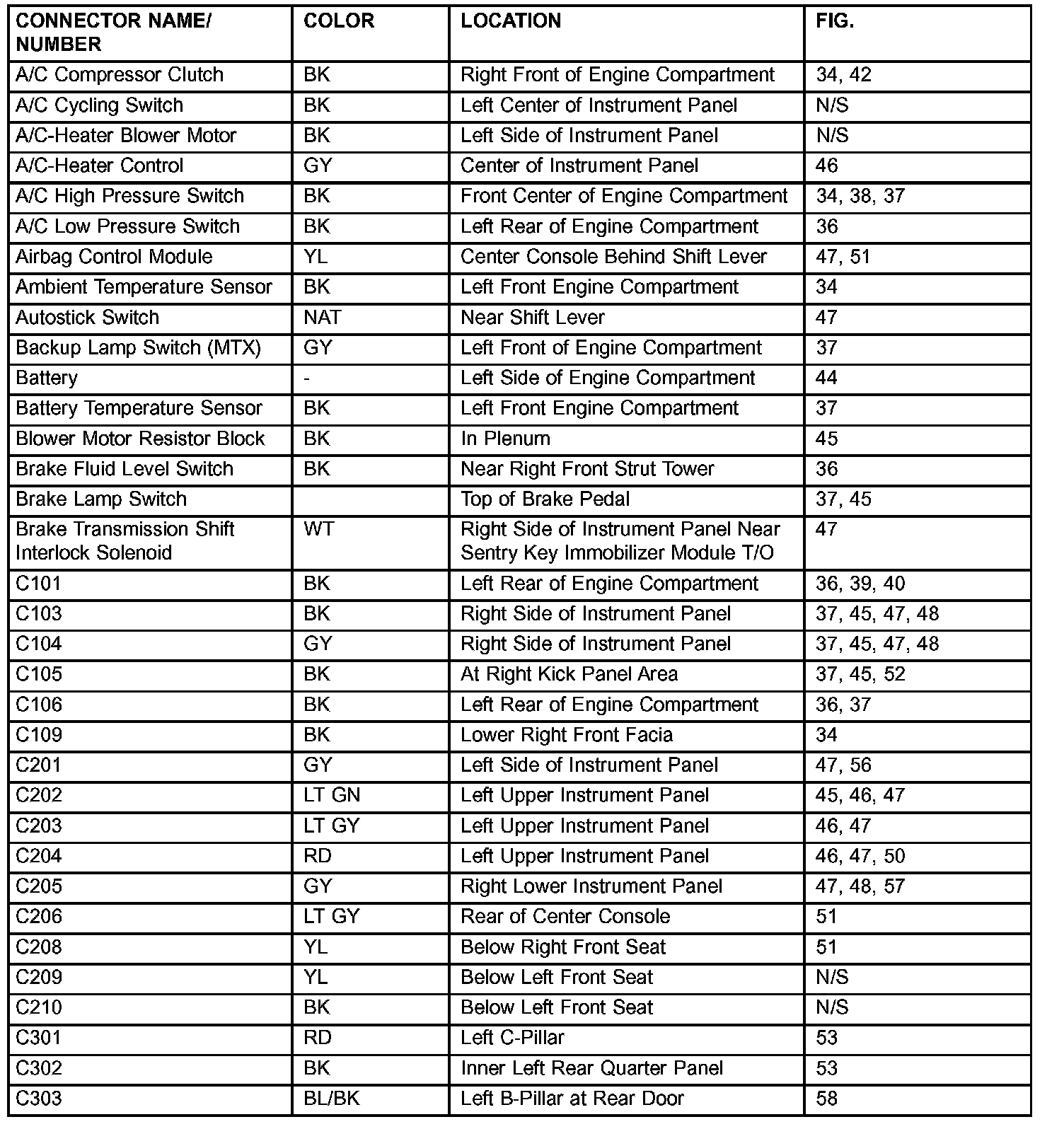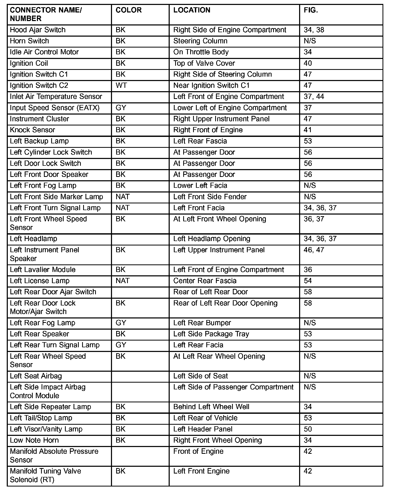 If a link on the index chart to a figure is not provided, that means that the connector and/or figure in question does NOT apply to the vehicle model selected.