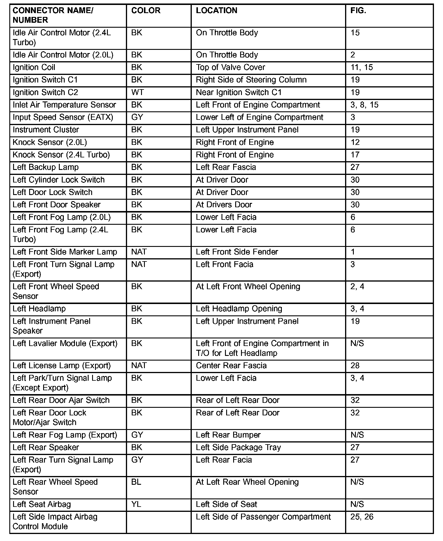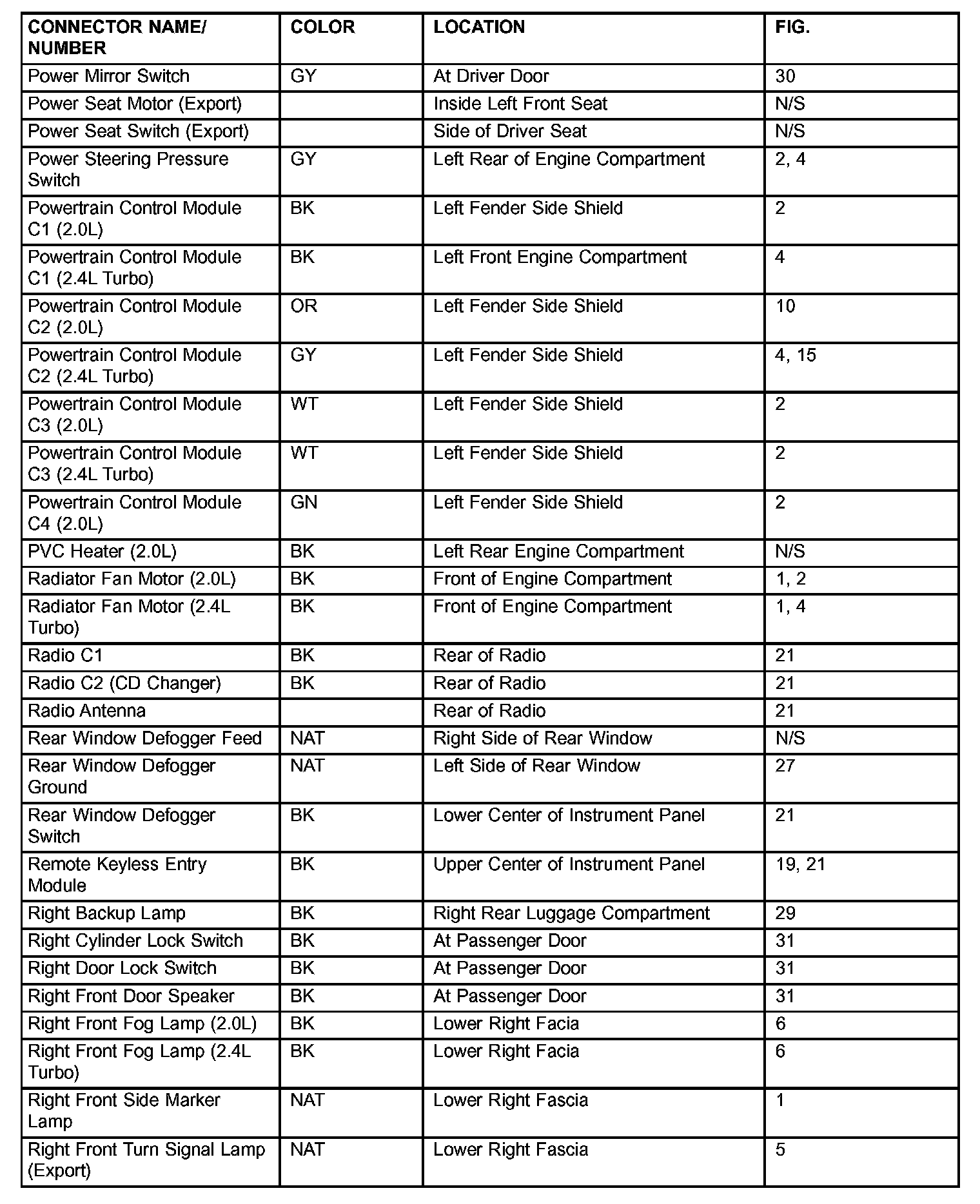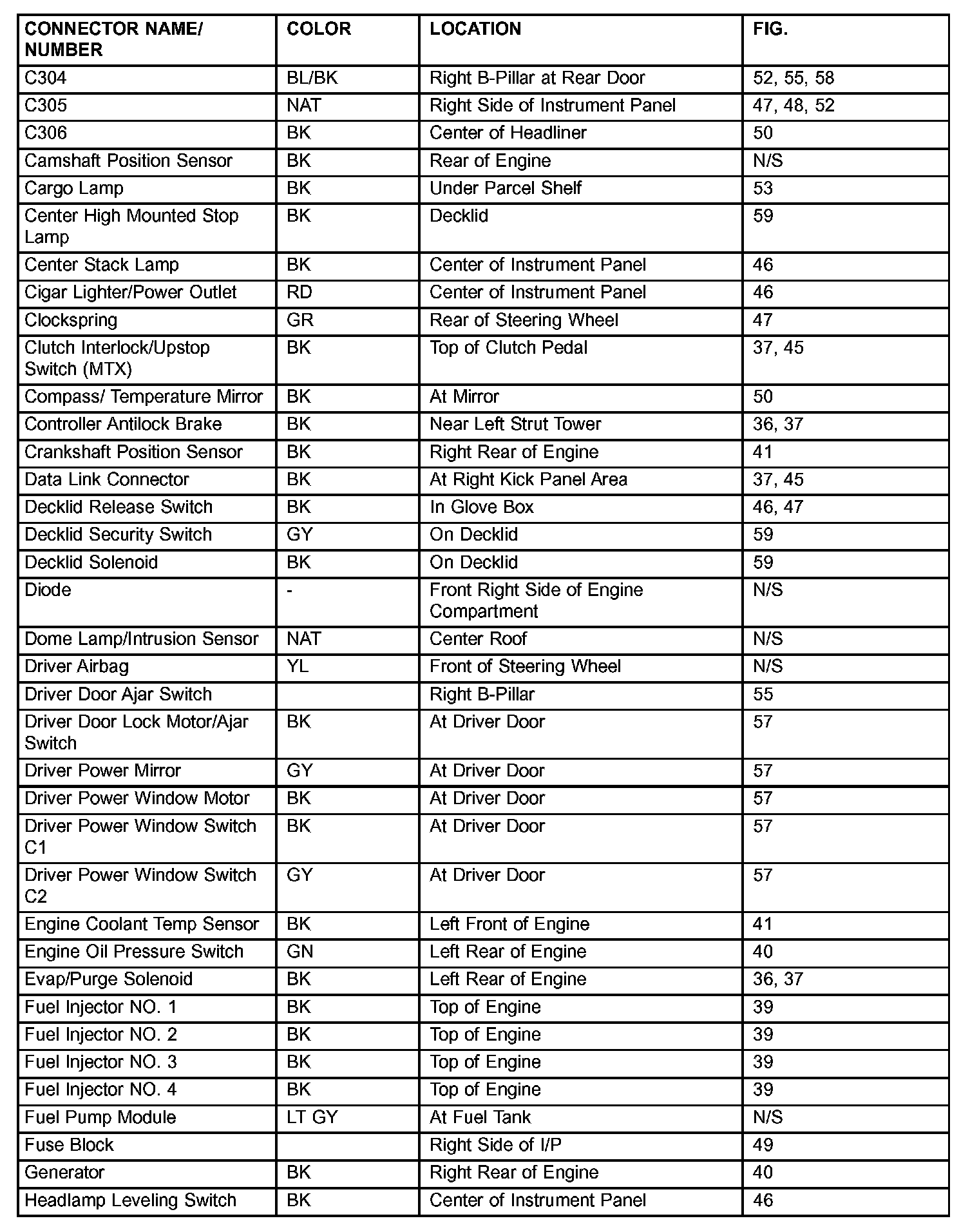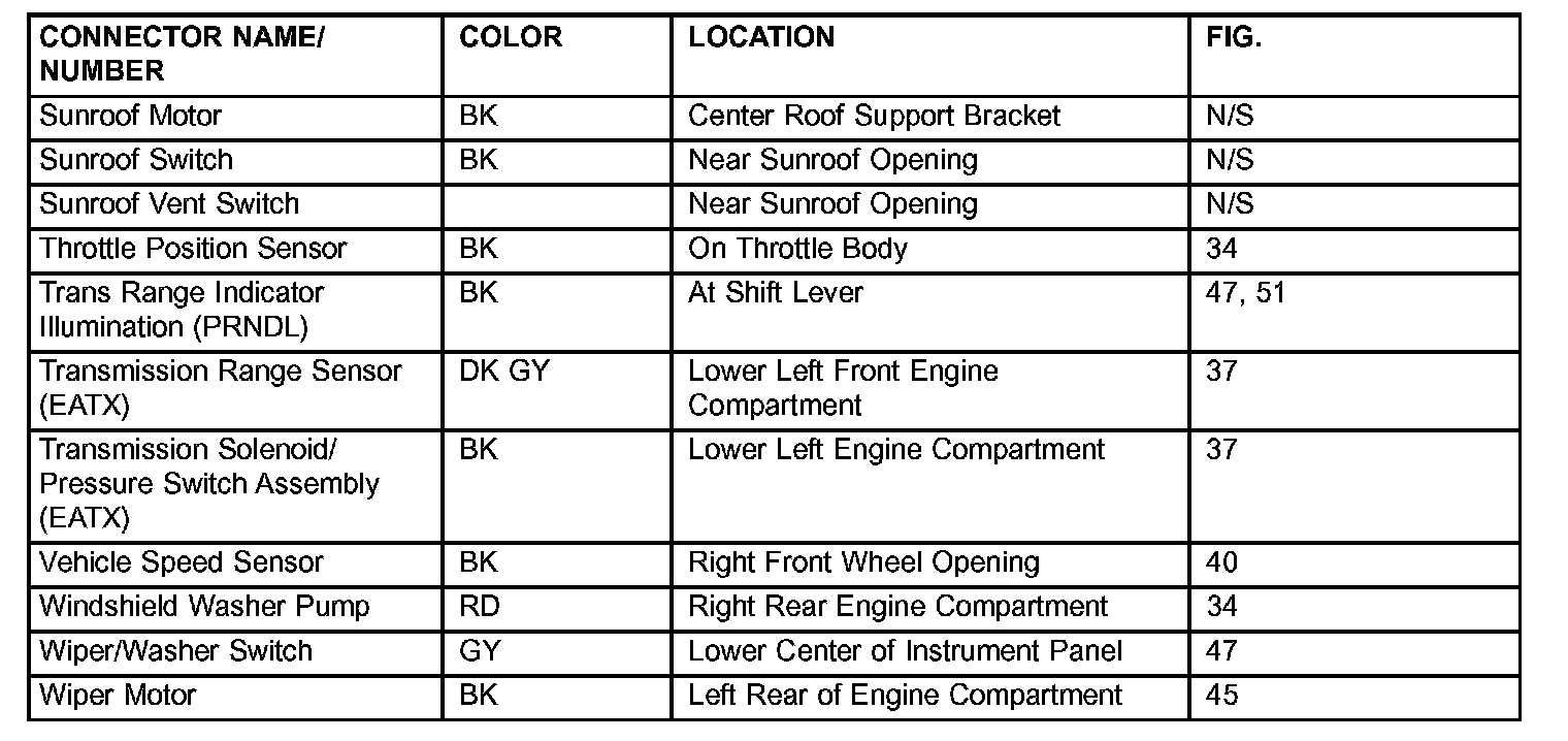 If a link on the index chart to a figure is not provided, that means that the connector and/or figure in question does NOT apply to the vehicle model selected.