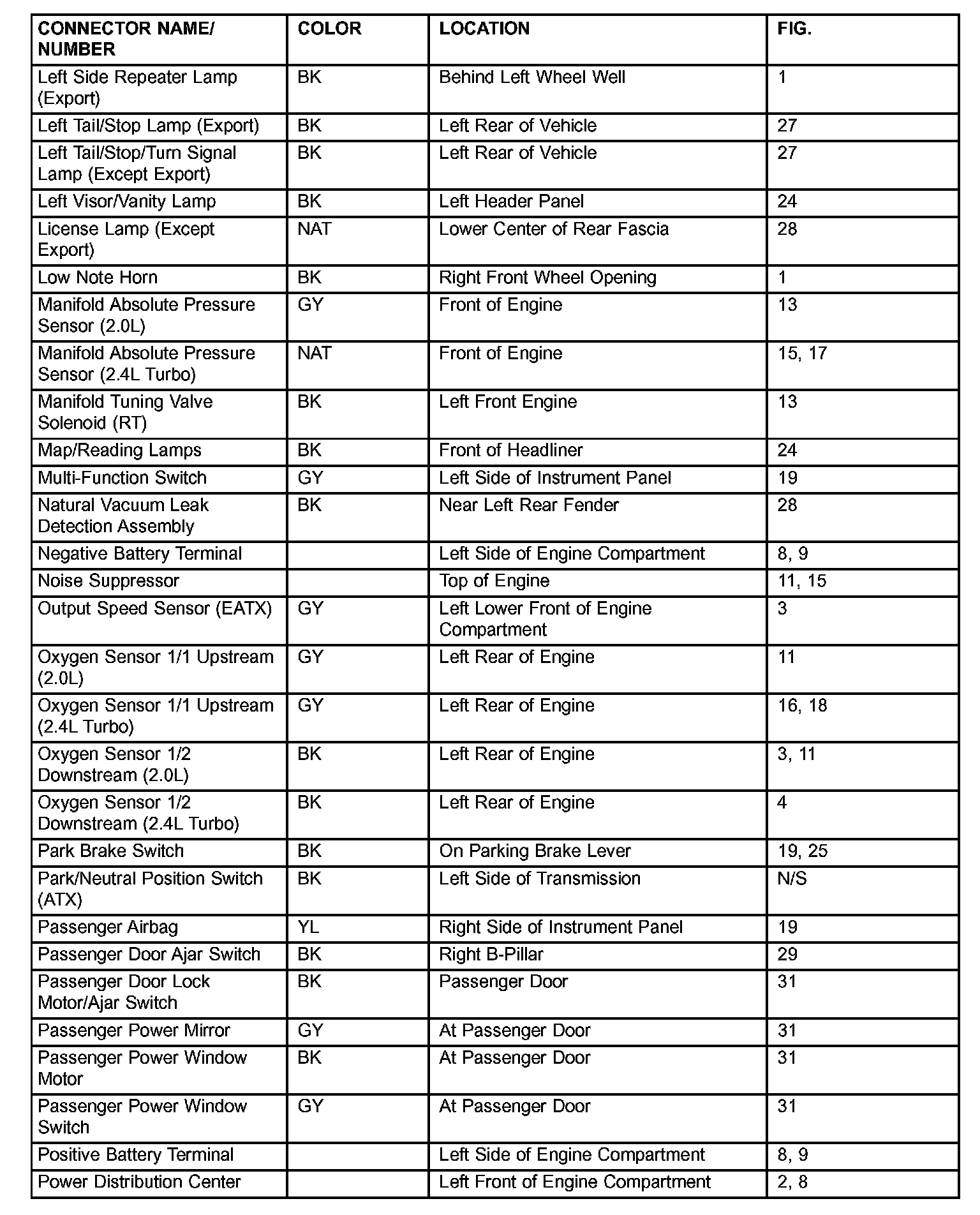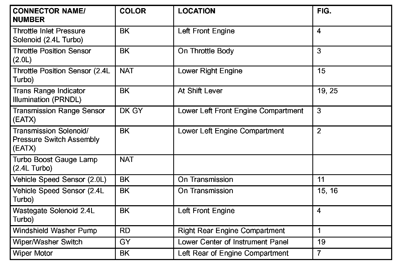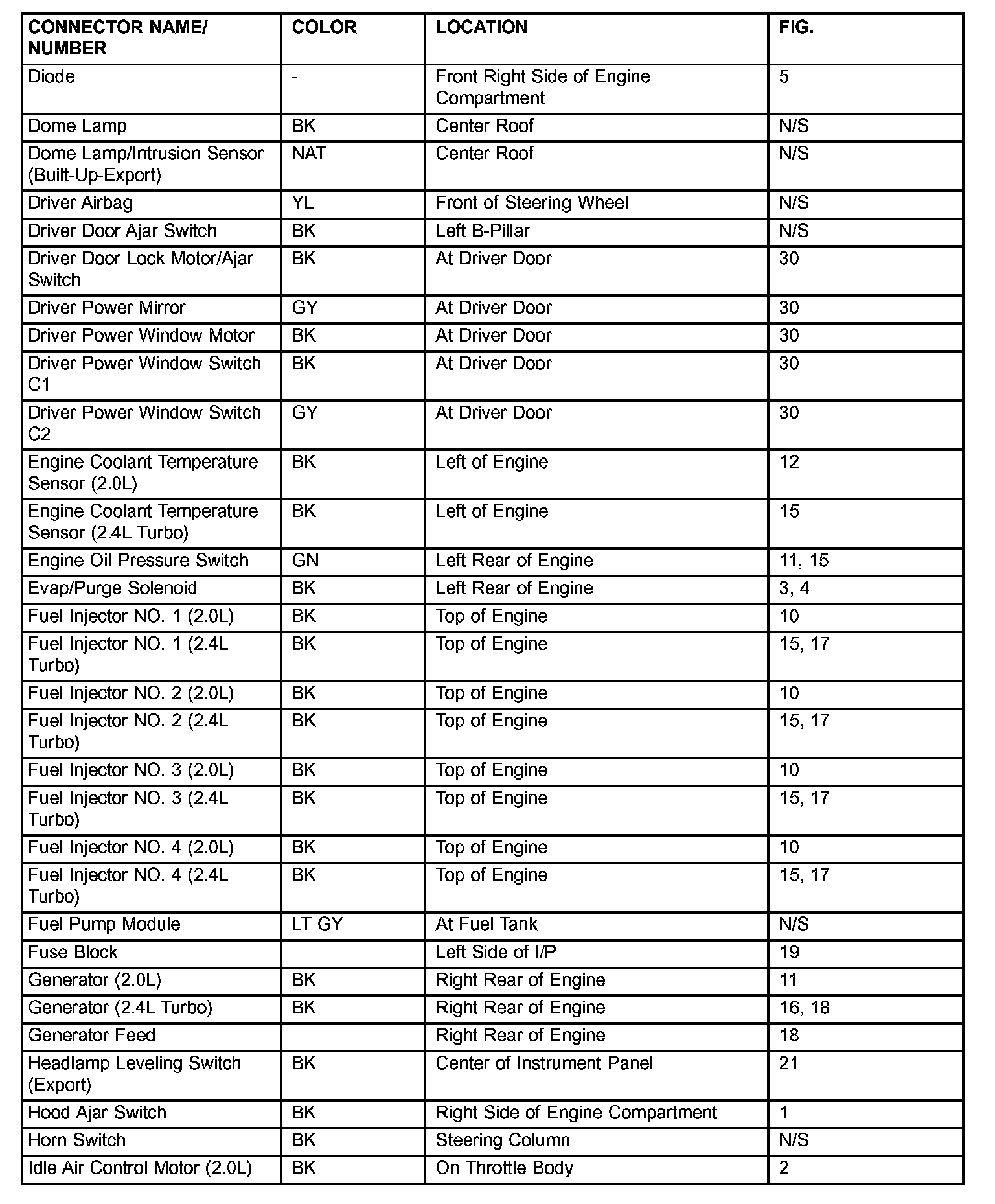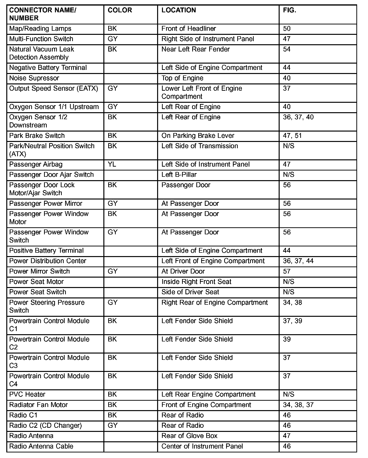 If a link on the index chart to a figure is not provided, that means that the connector and/or figure in question does NOT apply to the vehicle model selected.