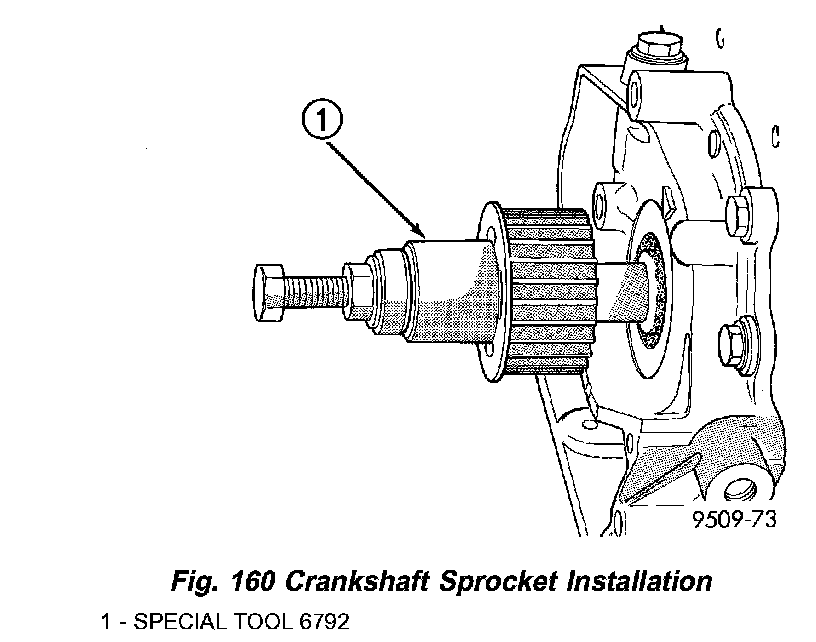 1. Install the crankshaft sprocket (Fig. 160) using Special Tool 6792.