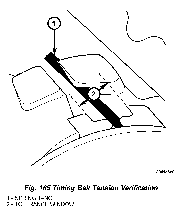 9. Check if the spring tang is within the tolerance window (Fig. 165). If the spring tang is within the tolerance window, the installation process is complete and nothing further is required. If the spring tang is not within the tolerance window, repeat Steps 6 through 8.