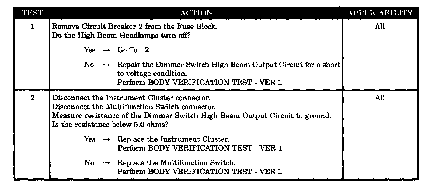 HIGH BEAM HEADLAMPS WILL NOT TURN OFF