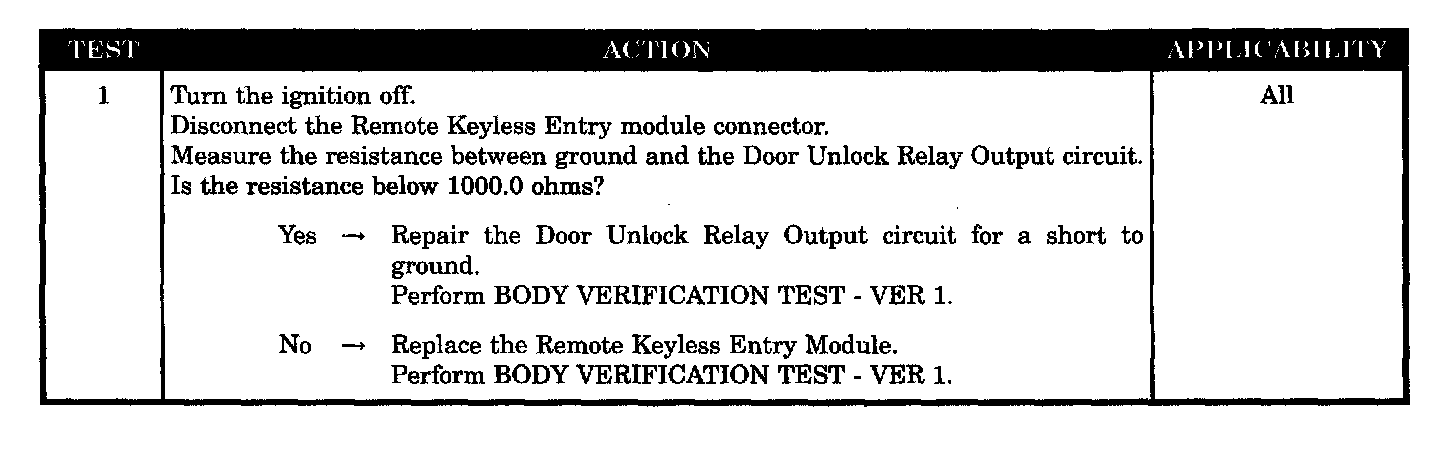 Remote keyless entry module - unlock relay