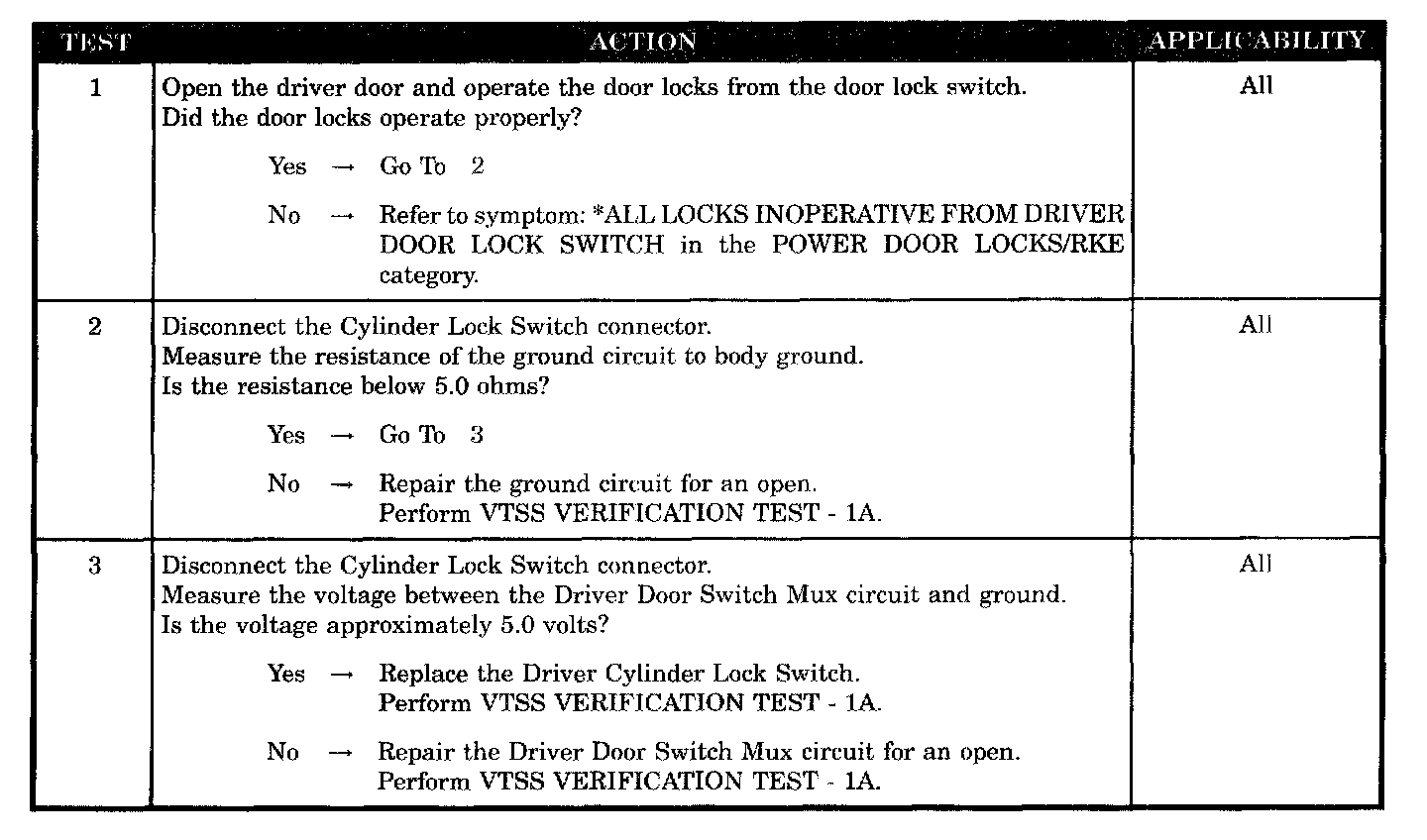 VTSS FAILS TO ARM/DISARM FROM DRIVER DOOR CYLINDER LOCK SWITCH