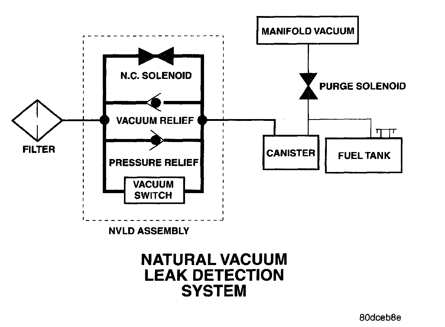 The Natural Vacuum Leak Detection (NVLD) system is the next generation evaporative leak detection system that will first be used on vehicles equipped with the Next Generation Controller (NGC) starting in 2002 M.Y This new system replaces the leak detection pump as the method of evaporative system leak detection. The current CARB requirement is to detect a leak equivalent to a 0.020 inches (0.5 mm) hole. This system has the capability to detect holes of this size very dependably