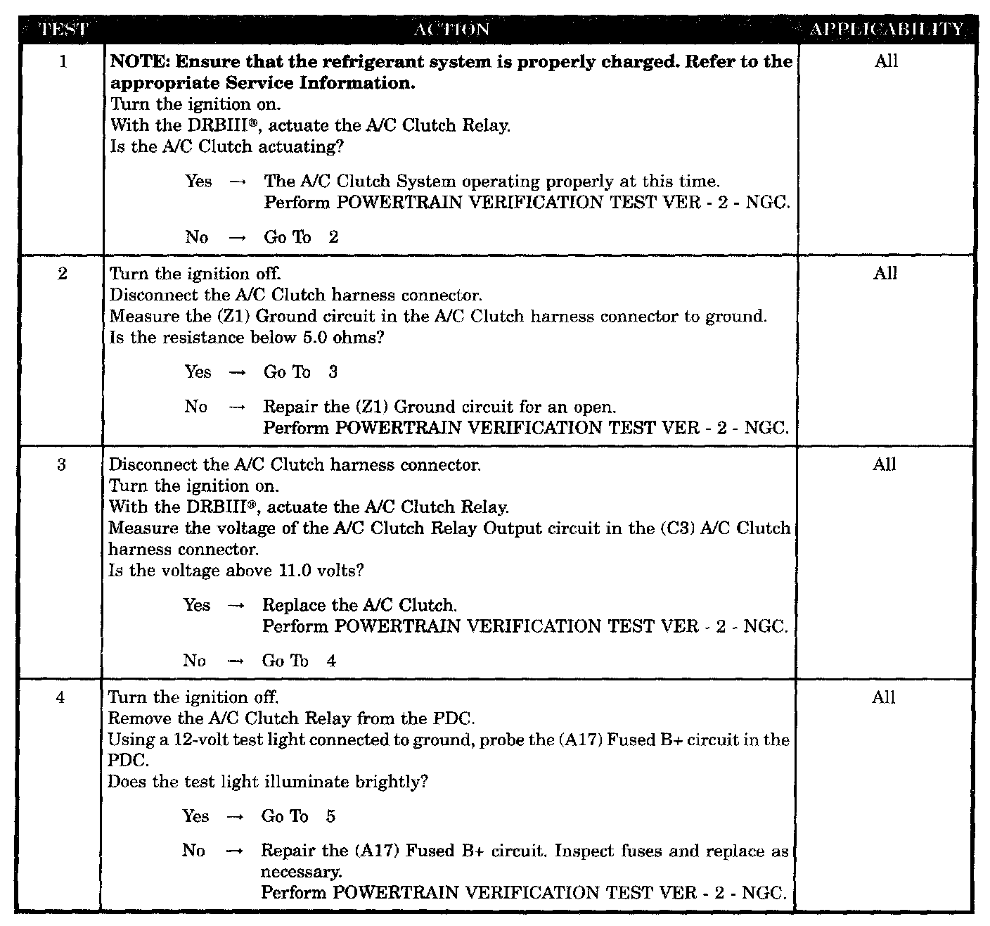 Checking the A/C Relay Output