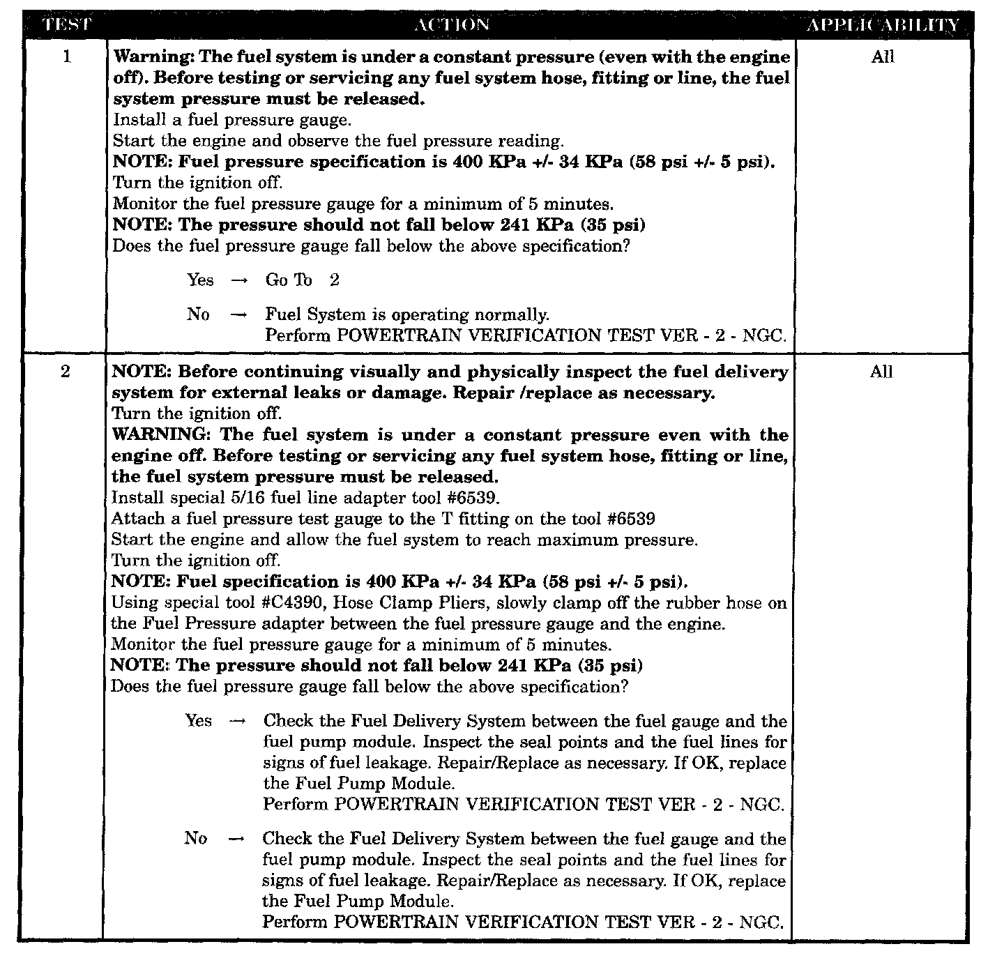 Checking Fuel Pressure Leak Down