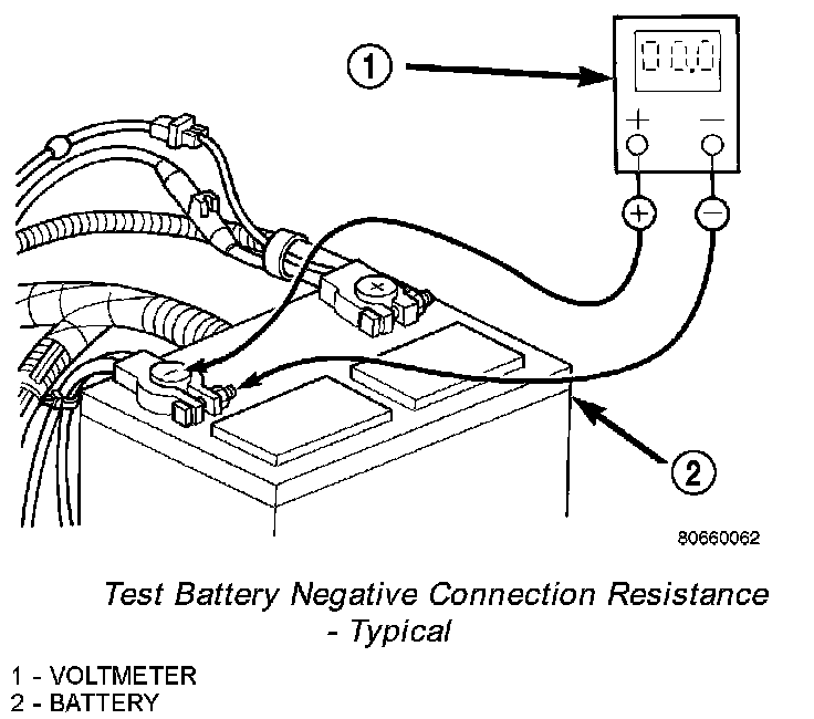 A voltage drop test will determine if there is excessive resistance in the battery cable terminal connections or the battery cable If excessive resistance is found in the battery cable connections, the connection point should be disassembled, cleaned of all corrosion or foreign material, then reassembled Following reassembly, check the voltage drop for the battery cable connection and the battery cable again to confirm repair