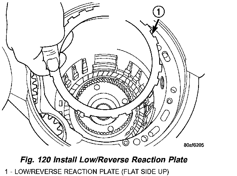ASSEMBLY Continued41. Install low/reverse reaction plate with flat side up (Fig. 120).