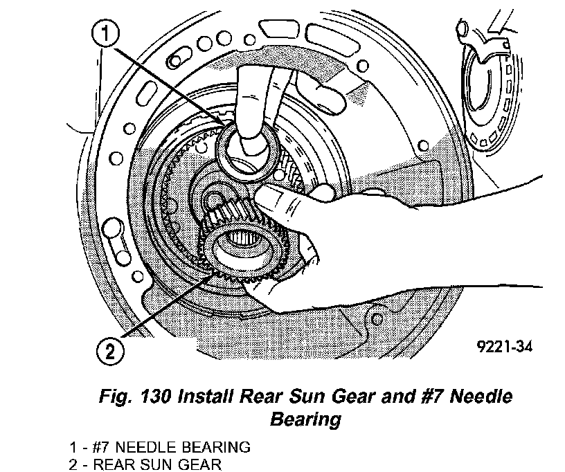 49. Install rear sun gear and #7 needle bearing (Fig. 130).