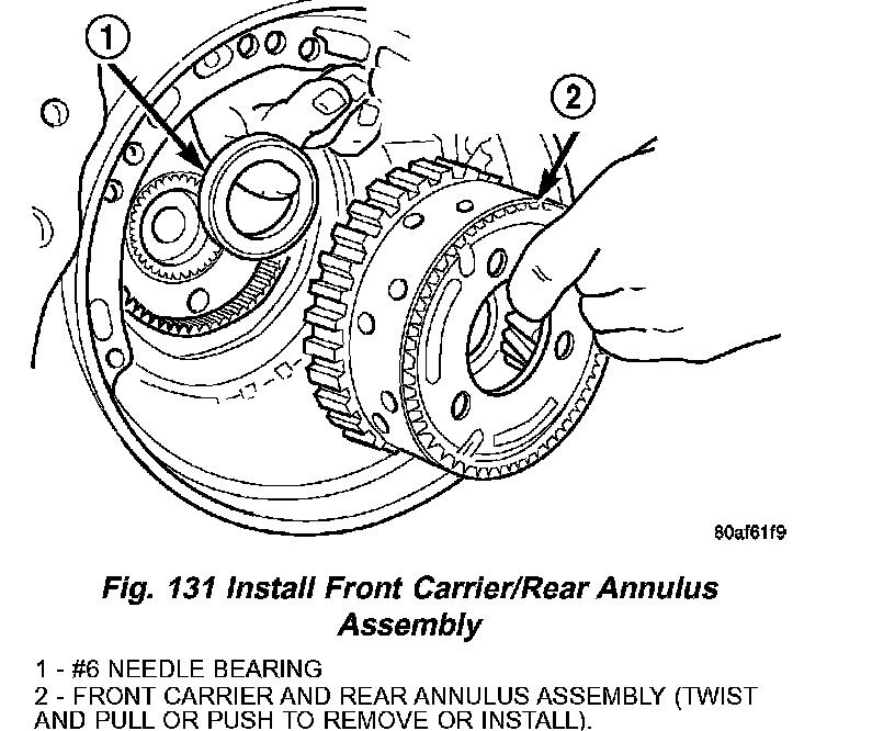 50. Install front carrier/rear annulus assembly and #6 needle bearing (Fig. 131).