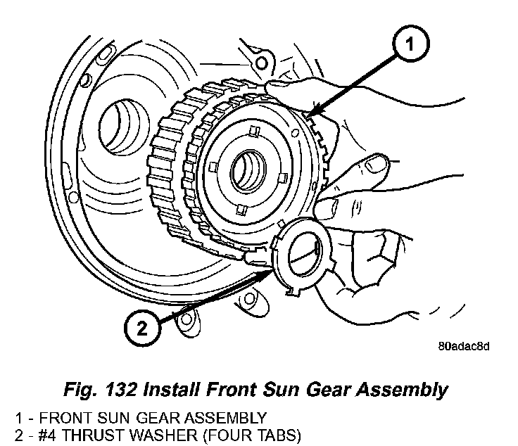 51. Install front sun gear assembly and #4 thrust washer (Fig. 132).