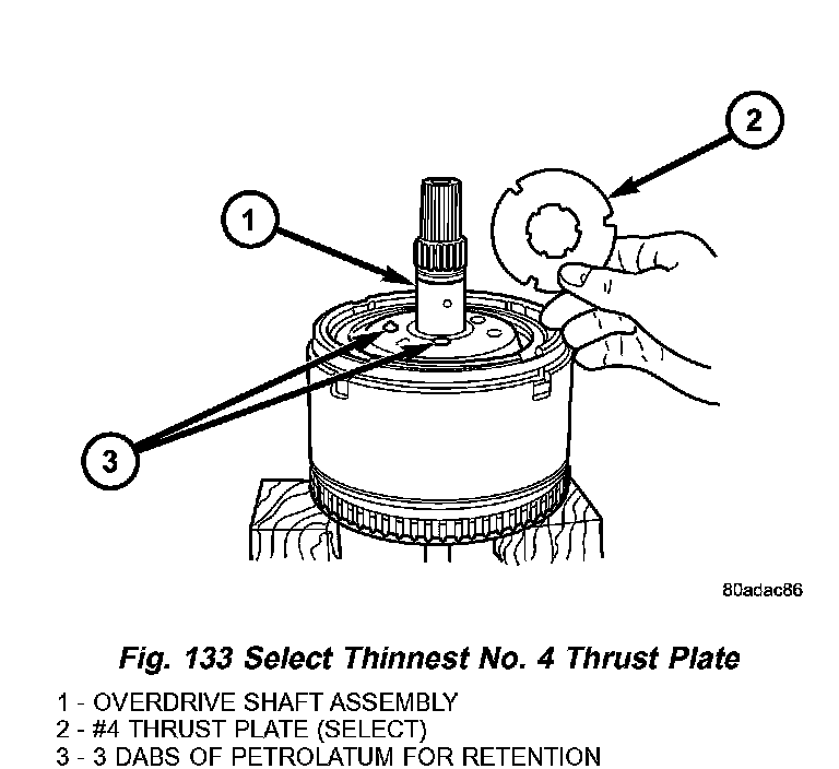 a. Select the thinnest #4 thrust plate thickness and install to input clutch assembly (Fig. 133). Use petrolatum to retain.