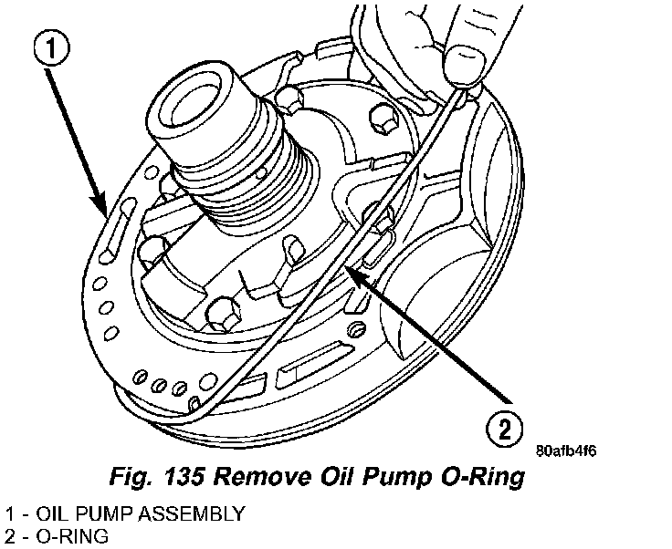 c. Remove oil pump O-ring (Fig. 135). Be sure to reinstall oil pump O-ring after selecting the proper #4 thrust plate.