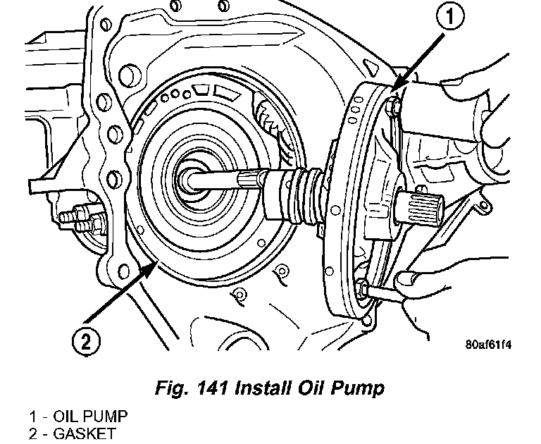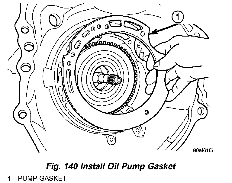 56. Install oil pump gasket (Fig. 140).