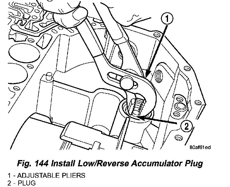 60. Install low/reverse accumulator plug (Fig. 144).