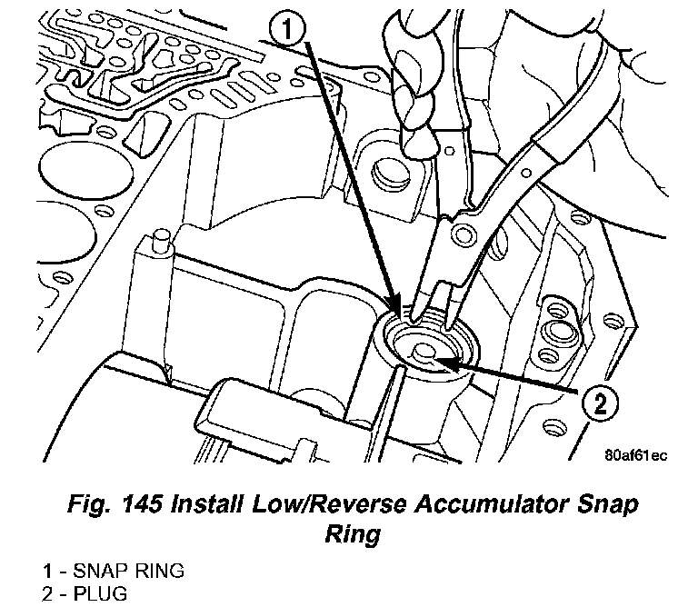 61. Install low/reverse accumulator snap ring (Fig. 145).