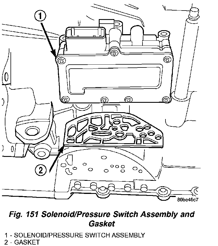 68. Install solenoid/pressure switch assembly and gasket to case (Fig. 151).