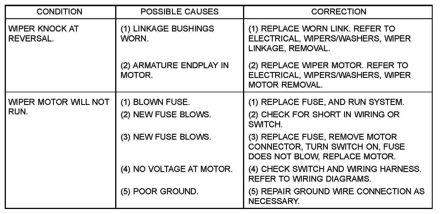 malfunction occurs, verify that the wire harness is properly connected, then start normal diagnosis and repair procedures. Refer to the WIPER MOTOR DIAGNOSIS table.