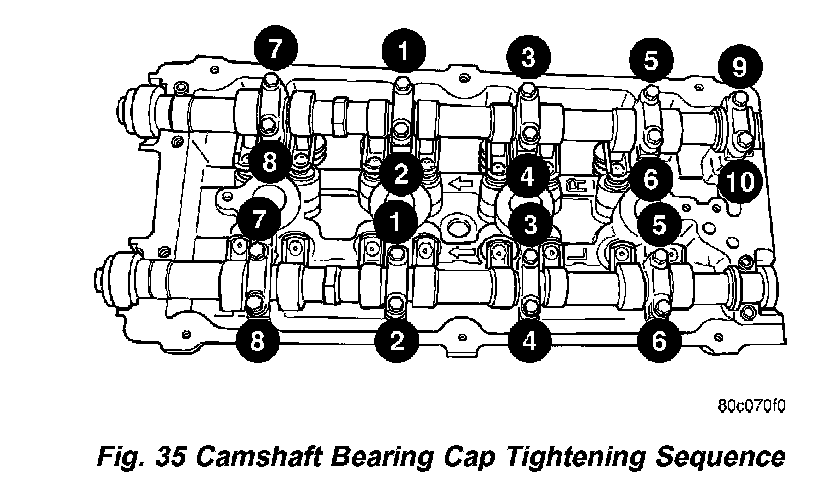 Tighten the cylinder head bolts in the sequence shown in (Fig. 26). Using the 4 step torque-turn method, tighten according to the following values: