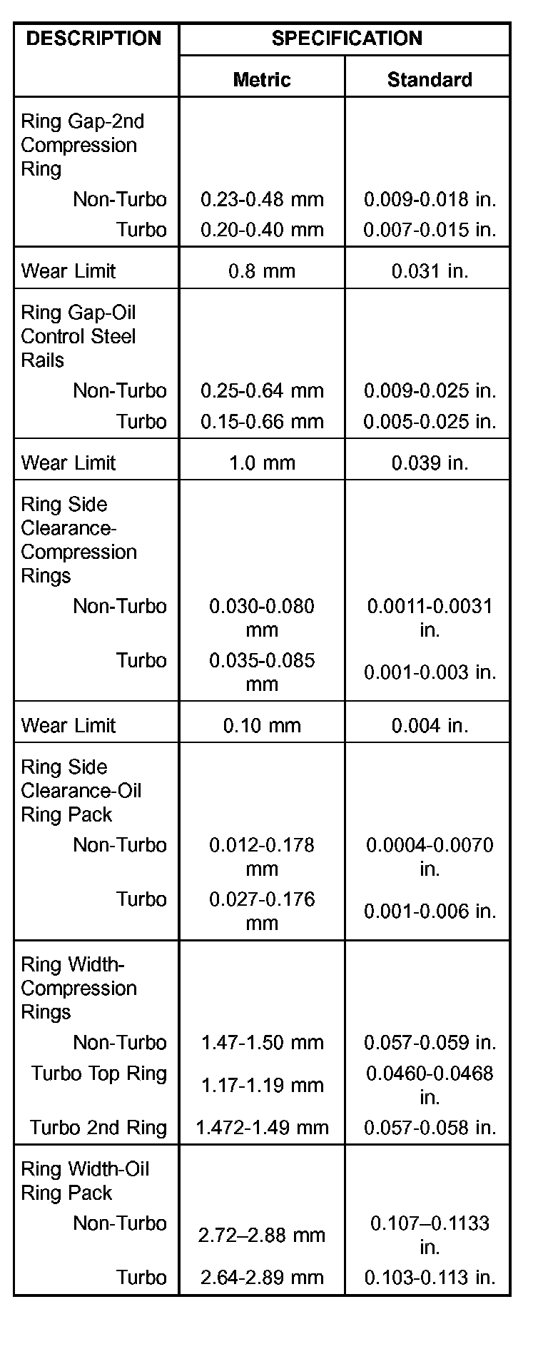 PISTONS DESCRIPTION SPECIFICATION