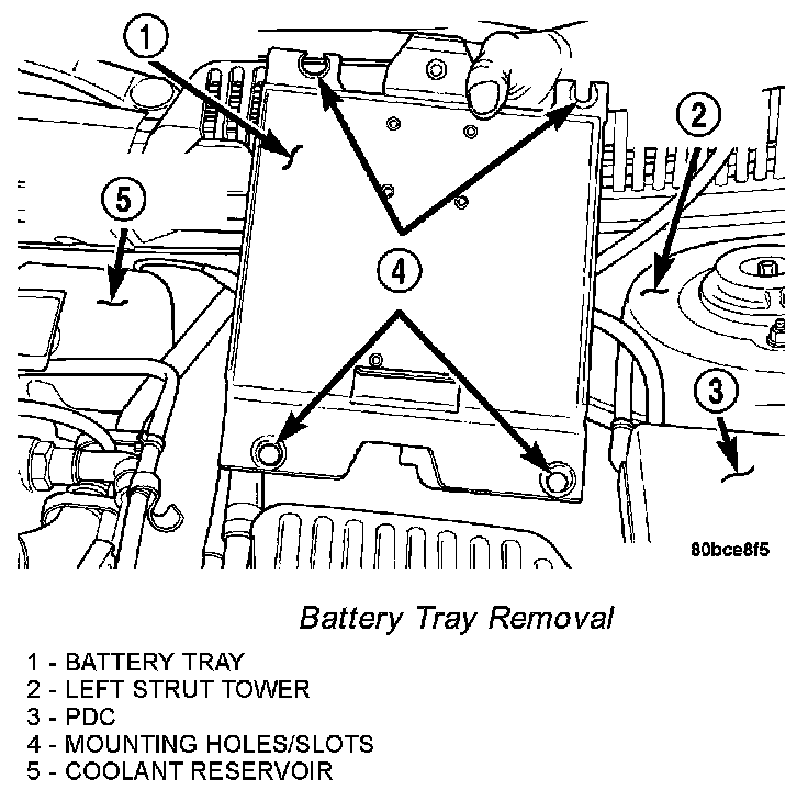REMOVAL1. Remove the battery from the vehicle. Refer to the procedure.