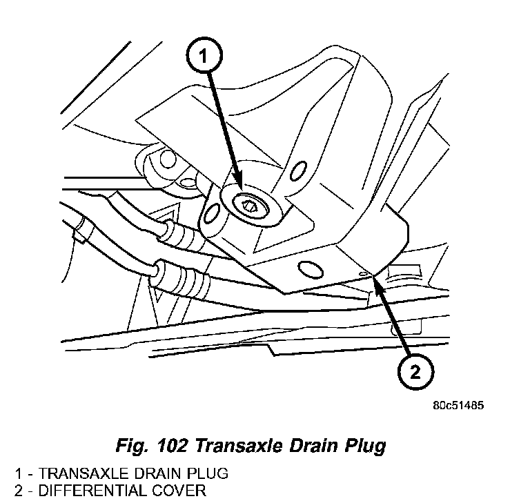 2. Remove transaxle drain plug (Fig. 102) and drain fluid into suitable container.