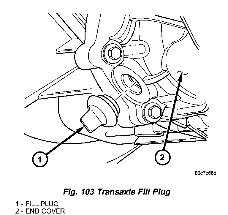 1. Remove transaxle fill plug (Fig. 103).