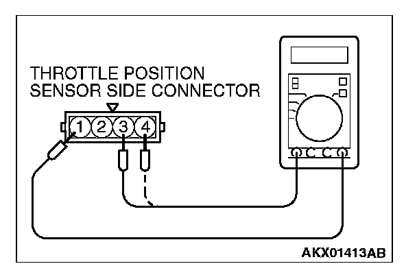 2. Measure resistance between the throttle position sensor side connector terminal No.1 and terminal No.4.