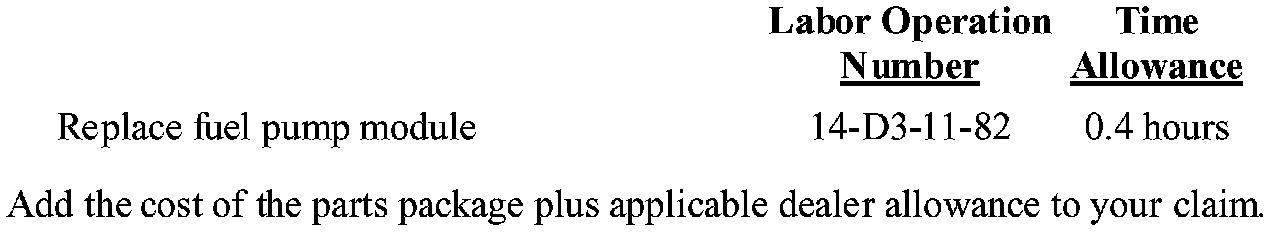 The appropriate fuel pump module for the vehicle being serviced is displayed on the DealerCONNECT VIP function and may also be determined by using the table shown.