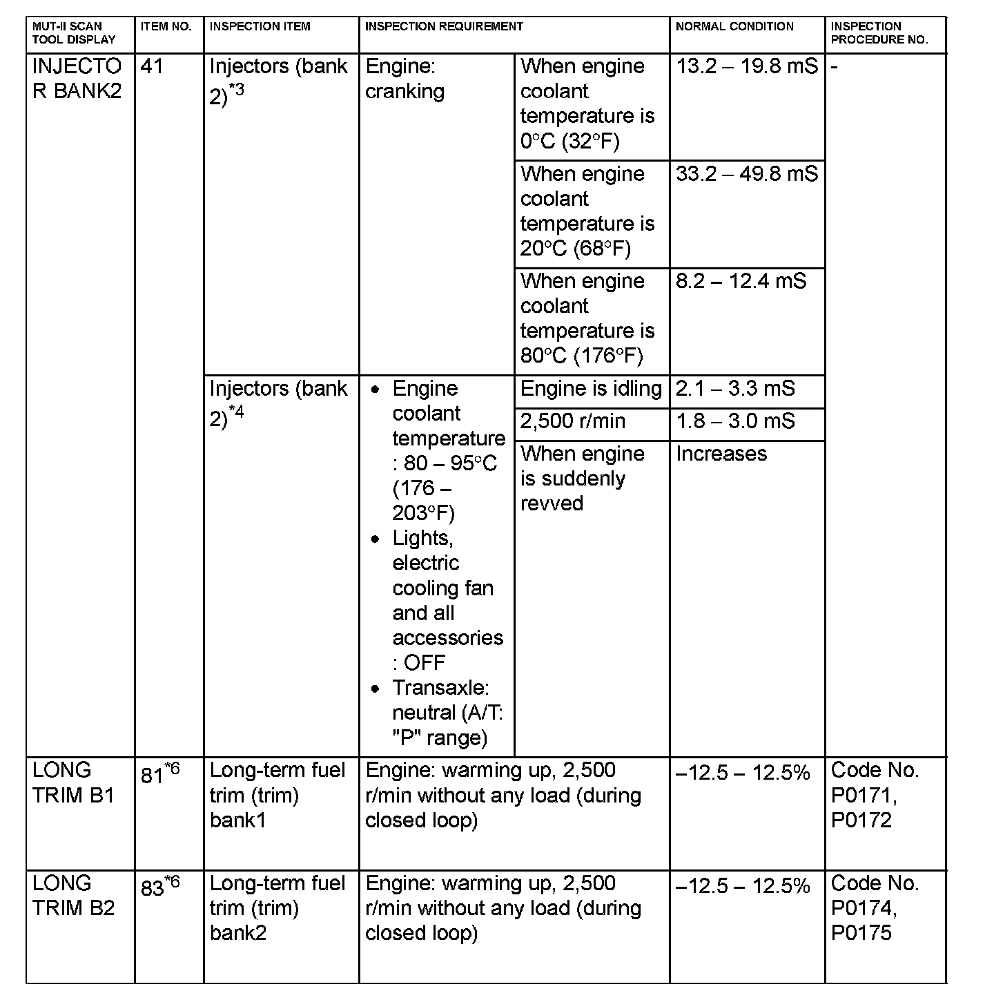 - *4: In a new vehicle [driven approximately 500 km (311 miles) or less], the injector drive time is sometimes 10% longer than the standard time.
