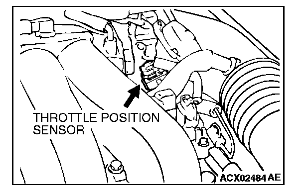 1. Disconnect the throttle position sensor connector, and connect the special tool MB991348 in between. (All terminals should be connected.)