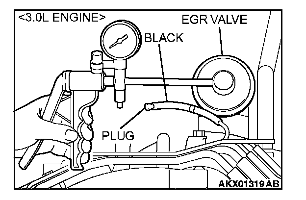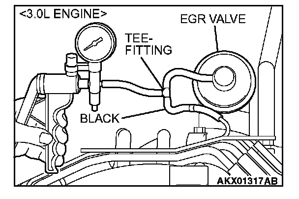 1. Disconnect the vacuum hose (black) from the EGR valve, and then connect a hand vacuum pump via the Tee-fitting.
