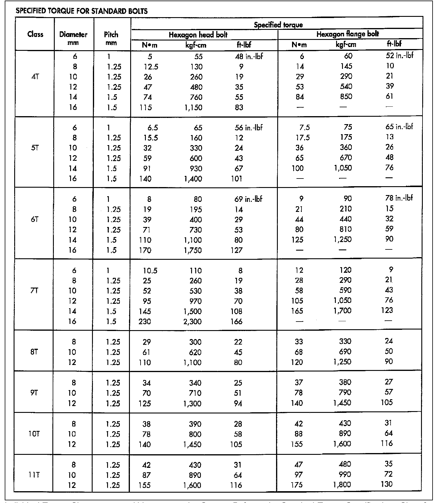 Individual Torque Charts appear within many or the Groups. Refer to the Standard Torque Specifications Chart for torque references not listed in the individual torque charts.