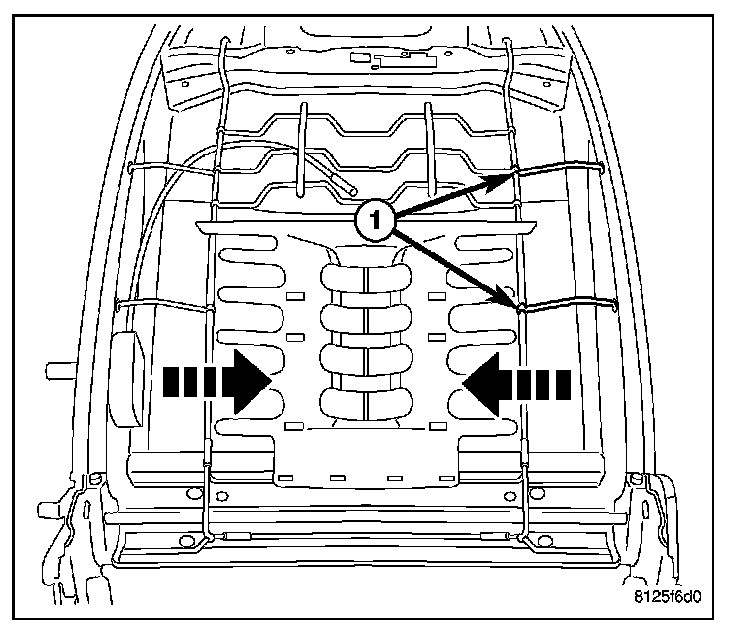 3. Release the lumbar mat side wires (1) by pulling out on the wire supports and then pulling them in.