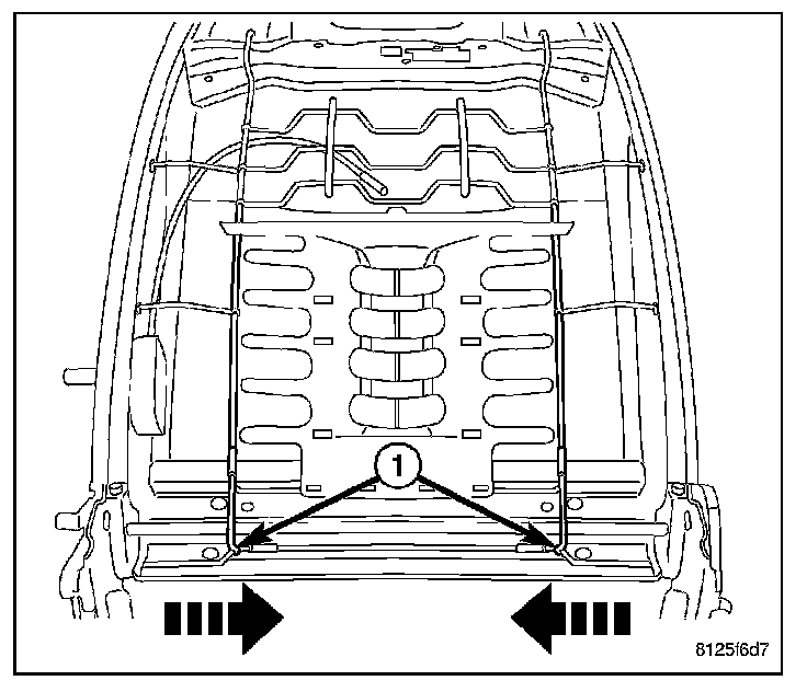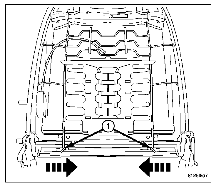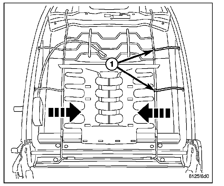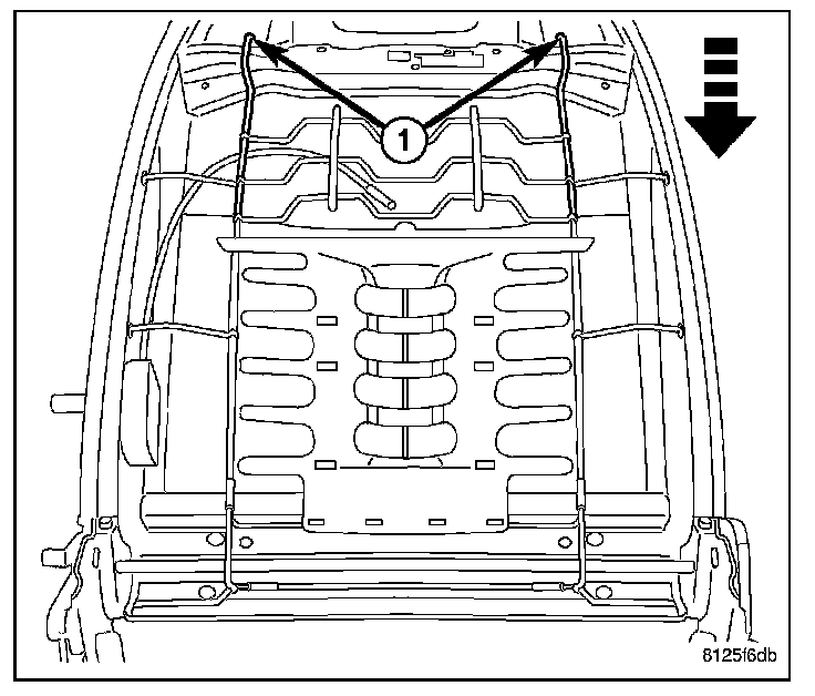 5. Pull the upper support wires (1) down and release the lumbar mat from the seat back frame.