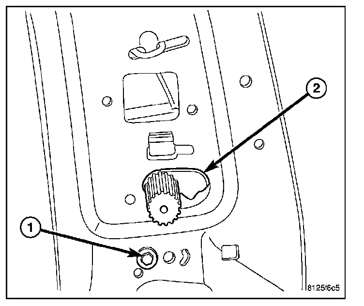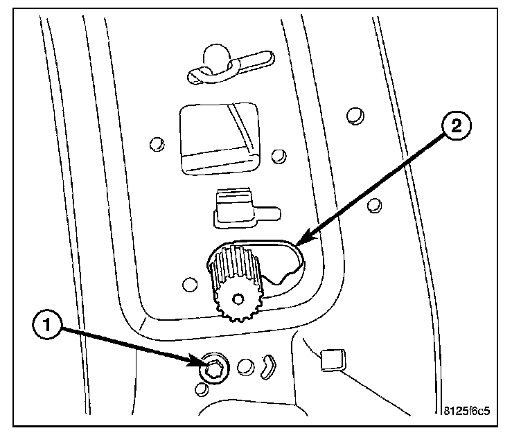 6. Remove the rivet (1) and remove the lumbar mechanism (2).