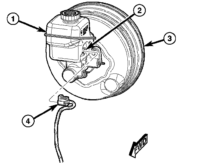 The brake fluid level sensor (2) is an integral part of the master cylinder fluid reservoir (1).