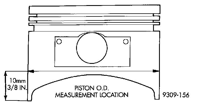 Piston and cylinder wall must be clean and dry Piston diameter should be measured 90 degrees to piston pin at size location shown. Cylinder bores should be measured halfway down the cylinder bore and transverse to the engine crankshaft center line. Refer to Engine Specifications. Pistons and cylinder bores should be measured at normal room temperature, 70°F (21°C).