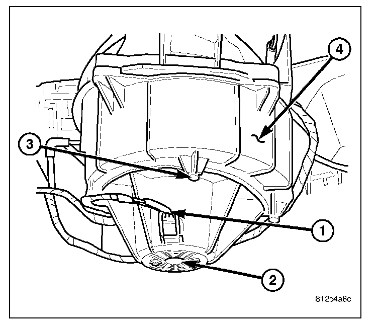 4. Remove the four screws (3) that secure the blower motor to the HVAC housing (4).