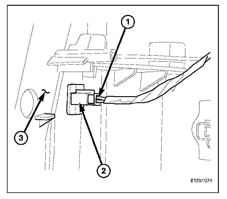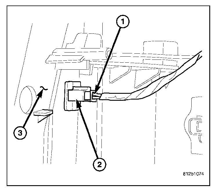 3. Disconnect the HVAC wire harness connector (1) from the evaporator temperature sensor (2) located on the HVAC housing (3).