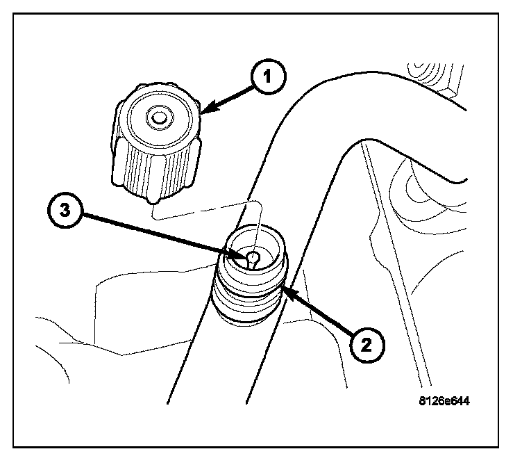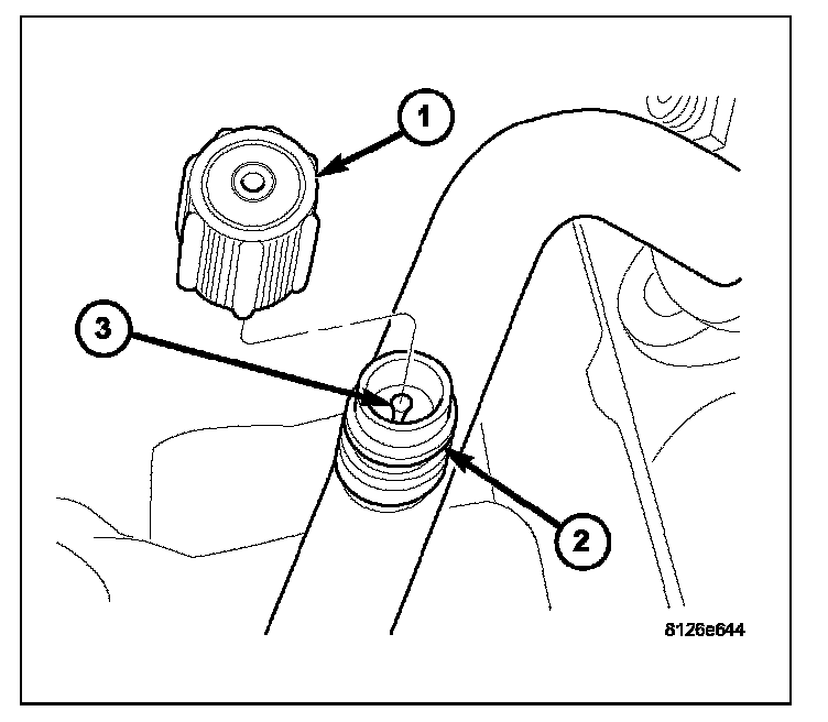 3. Using a Schrader-type valve core tool, remove the valve core (3) from the service port.
