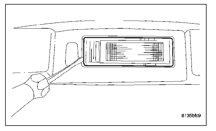 2. Using a trim stick (special tool #C-4755) or equivalent, gently pry out the edge of the reading lamp lens. There will be a small slot on the side of the lens that should be used. Looking at the unit it will be on the left side of the lens.