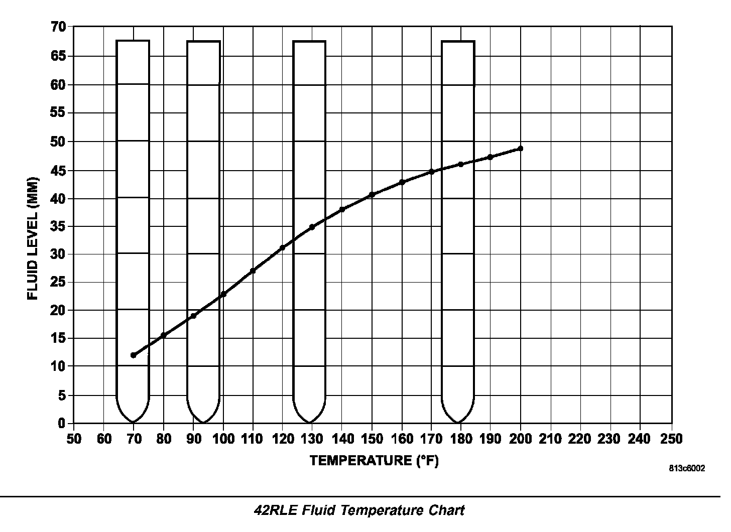 7. The transmission Oil Dipstick 9336 has indicator marks every 10mm. Determine the height of the oil level on the dipstick and using the height, the transmission temperature, and the Transmission Fluid Graph, determine if the transmission oil level is correct.