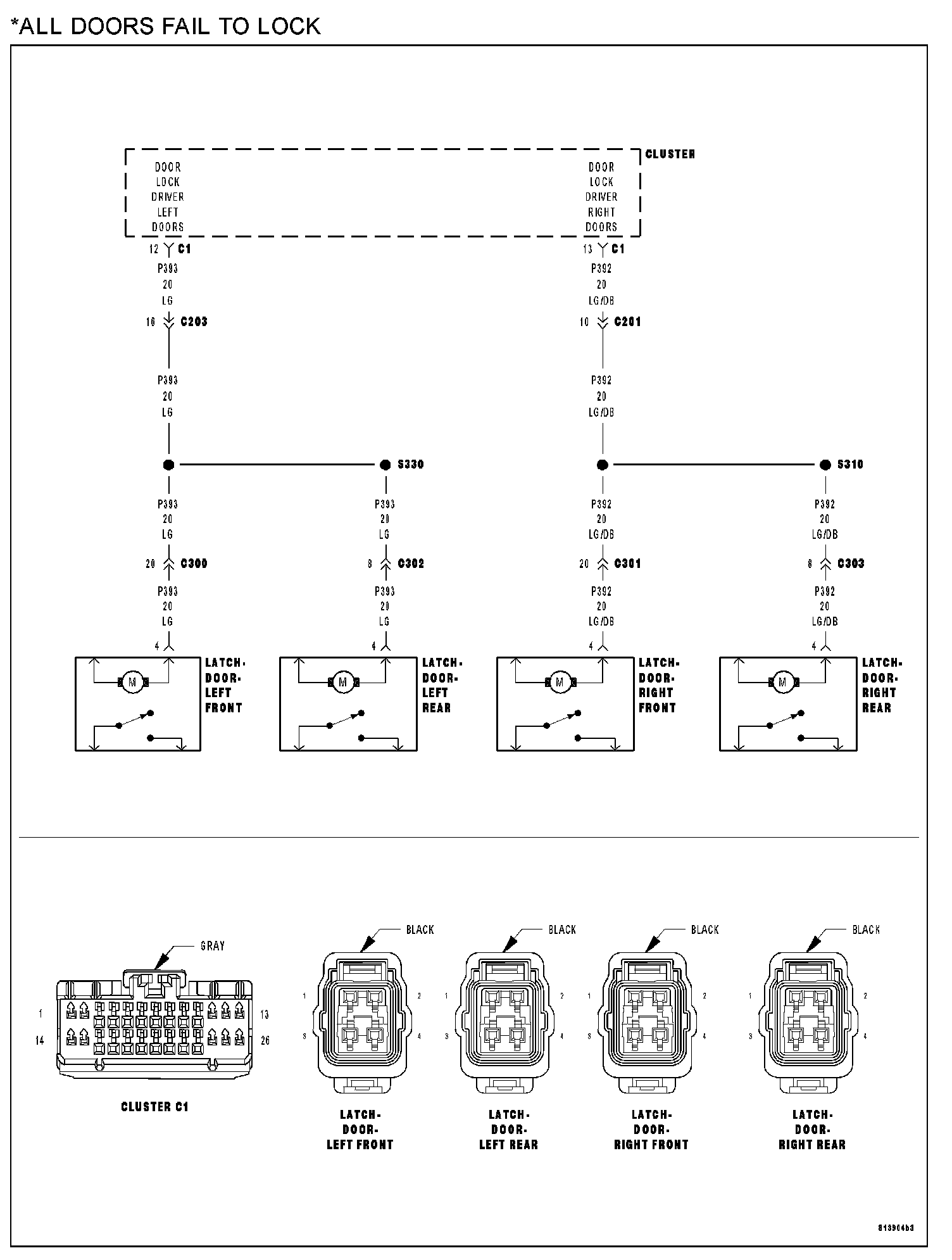 3. CHECK (P393) DOOR LOCK DRIVER LEFT DOORS CIRCUIT FOR A SHORT TO GROUND